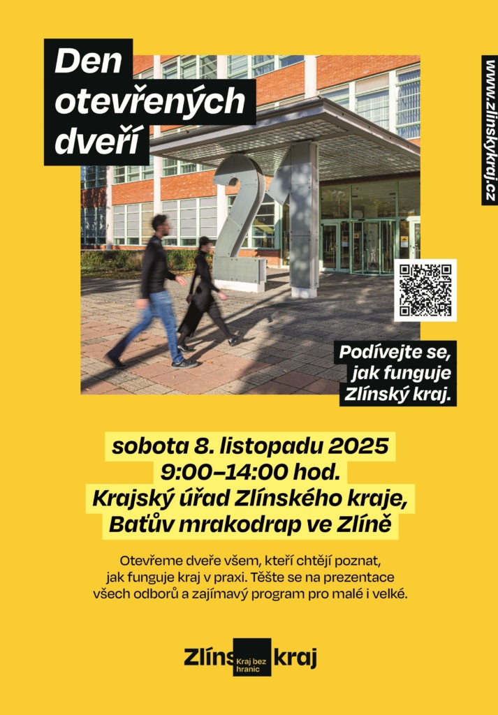 Vstup je zdarma. Těšíme se na všechny, kteří chtějí poznat, jak kraj skutečně funguje a zažít atmosféru Baťova mrakodrapu z jiné perspektivy. Více na www.zlinskykraj.cz.